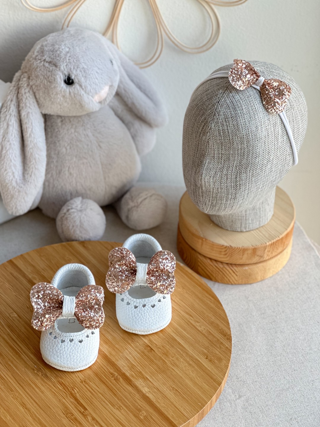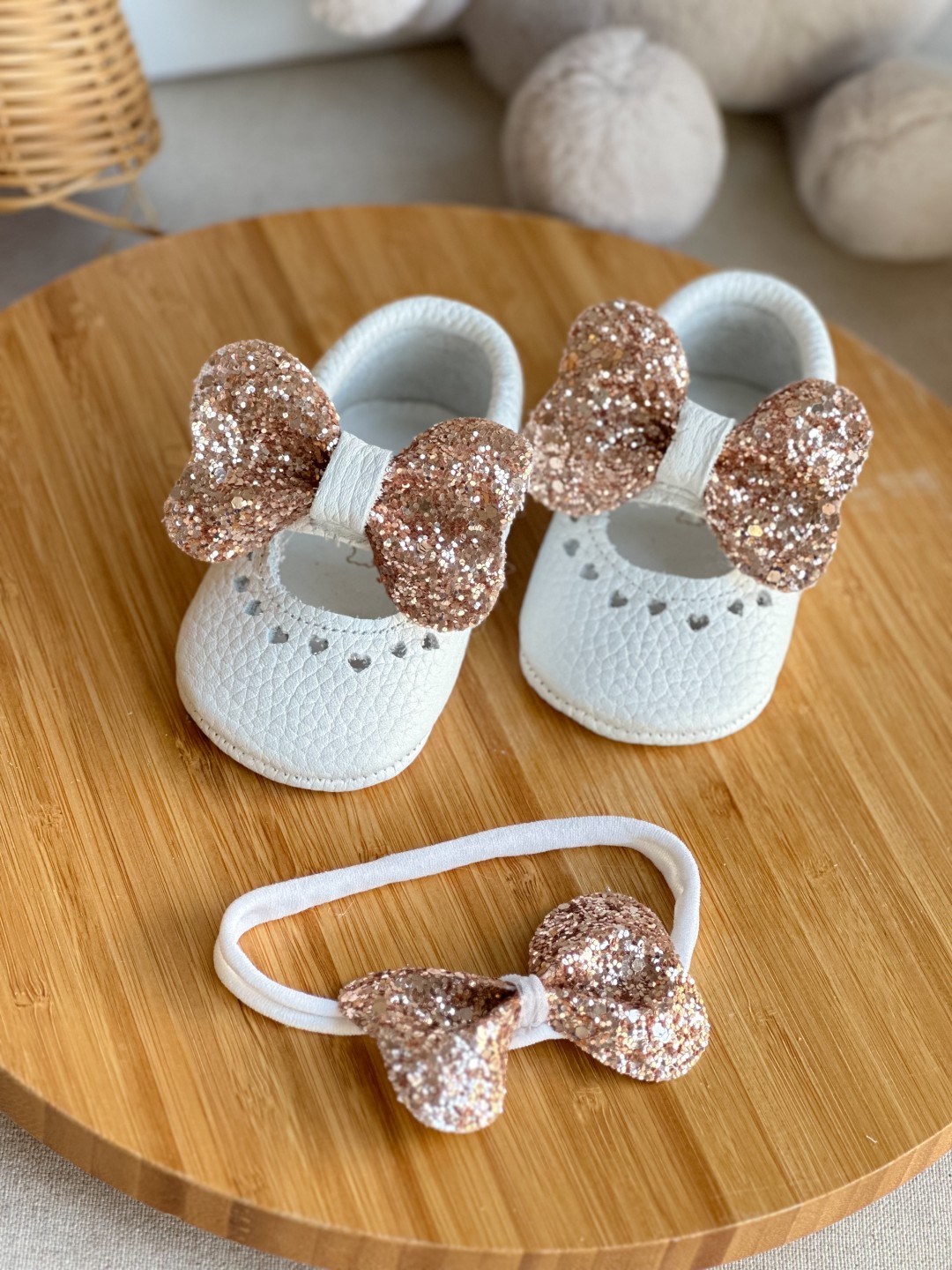 Somon Taşlı Shine Serisi Beyaz Bebek Makosen Ayakkabısı