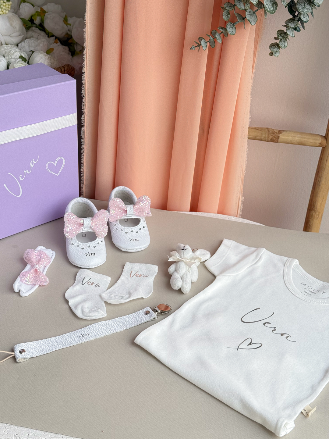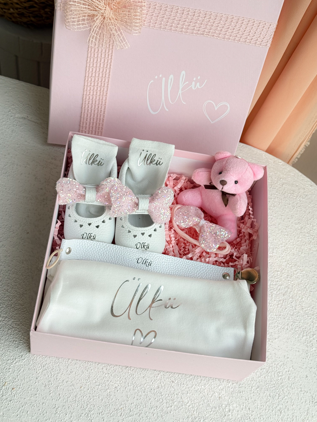 Lila Taşlı Beyaz Shine Zıbınlı Bebek Hediye Seti